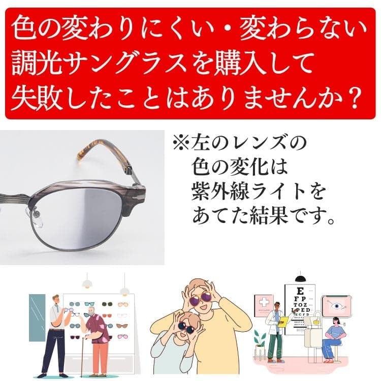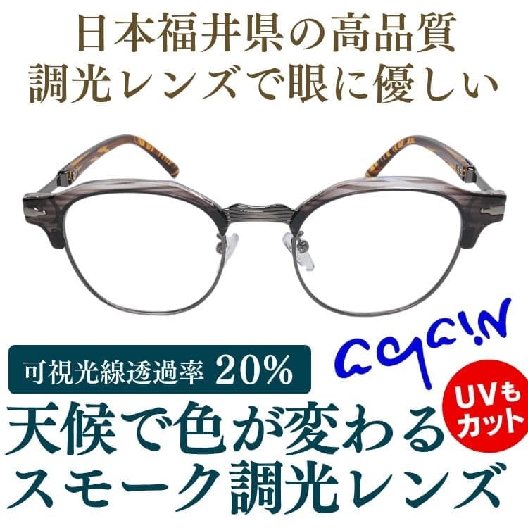 日本 福井県の高品質 AGAIN 調光サングラス 天候で色が変わる 調光レンズ 紫外線カット サーモント ドライブ ゴルフ 釣り