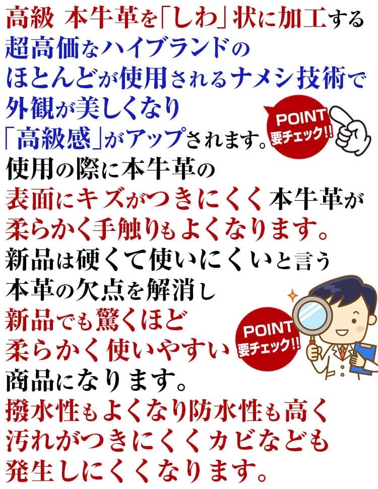 ・天然皮革ですのでキズ・色のムラ・シワ・匂いがある場合がございます。