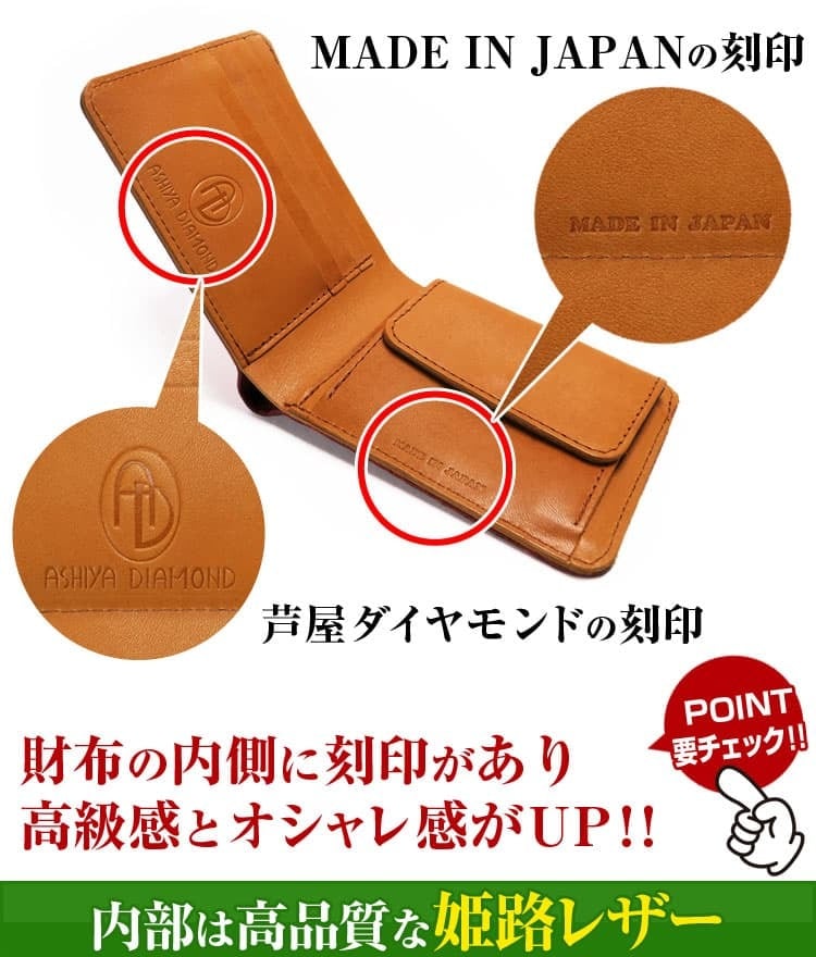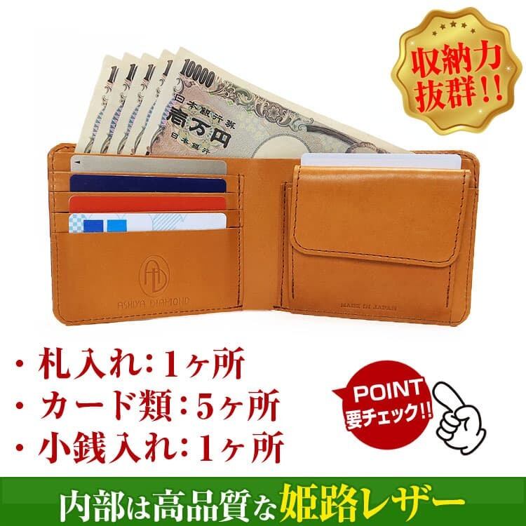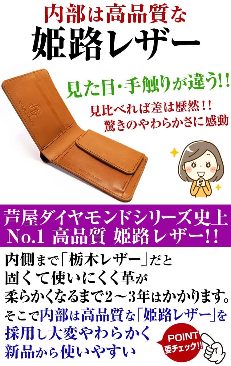 栃木レザー 日本製 2つ折り財布 内部は姫路レザー超高品質 メンズ レディース 芦屋ダイヤモンド正規品 セール