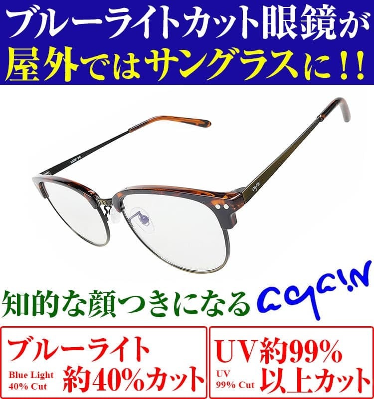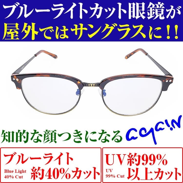 AGAIN ヴィンテージ調 ブルーライトカット眼鏡 屋外ではサングラス サーモント メガネ 紫外線カット UVカット セール 送料無料