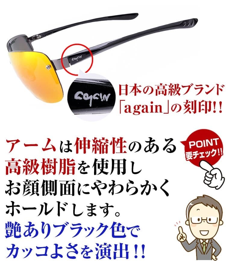 AGAIN偏光サングラス フラッシュミラー 全3色 日本TOP級ブランドDNAメーカー共同開発 釣り ゴルフ スポーツに セール 送料無料