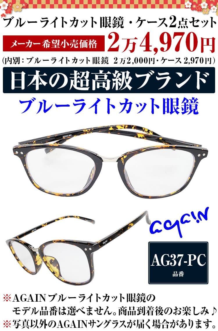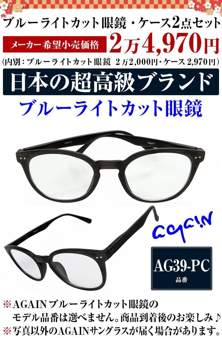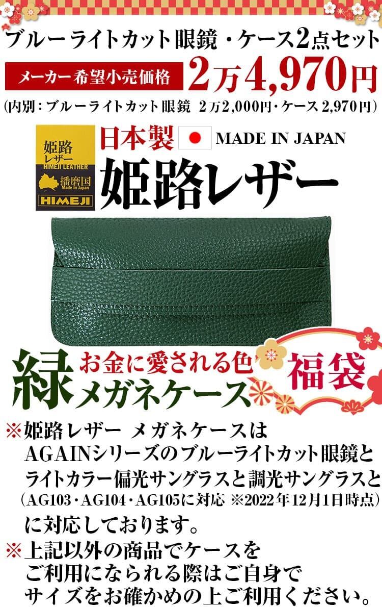 店長おすすめ \姫路レザーメガネケース単体でも2,970円/ ブルーライトカット眼鏡1点とケース1点の合計2点セット 2月28日まで2万4,970円が84%OF 送料無料F 福袋 2023年 AGAIN サングラス